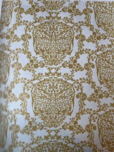 « Ce papier peint a comme une sorte de sous-motif dans une teinte différente, une teinte particulièrement irritante, car on ne peut le voir que sous une certaine lumière, et encore pas clairement.