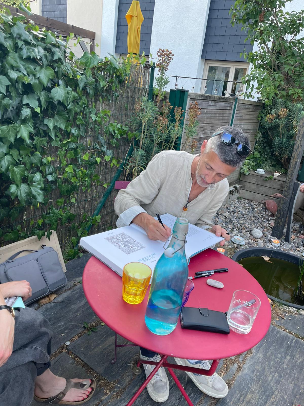 - Il signe des dédicaces