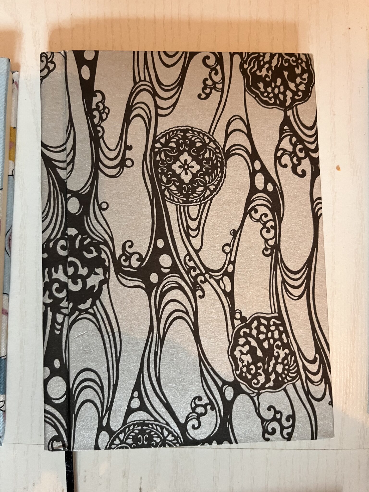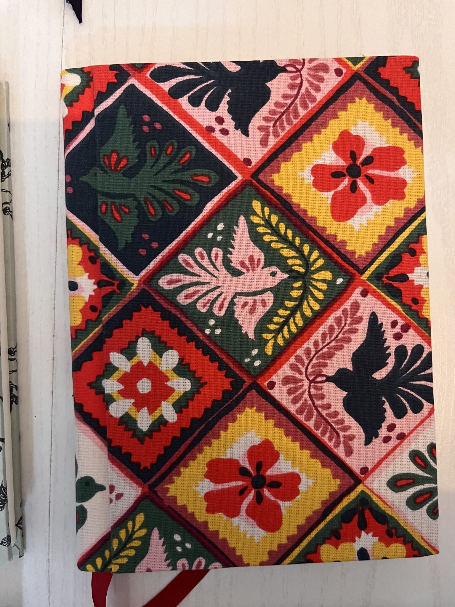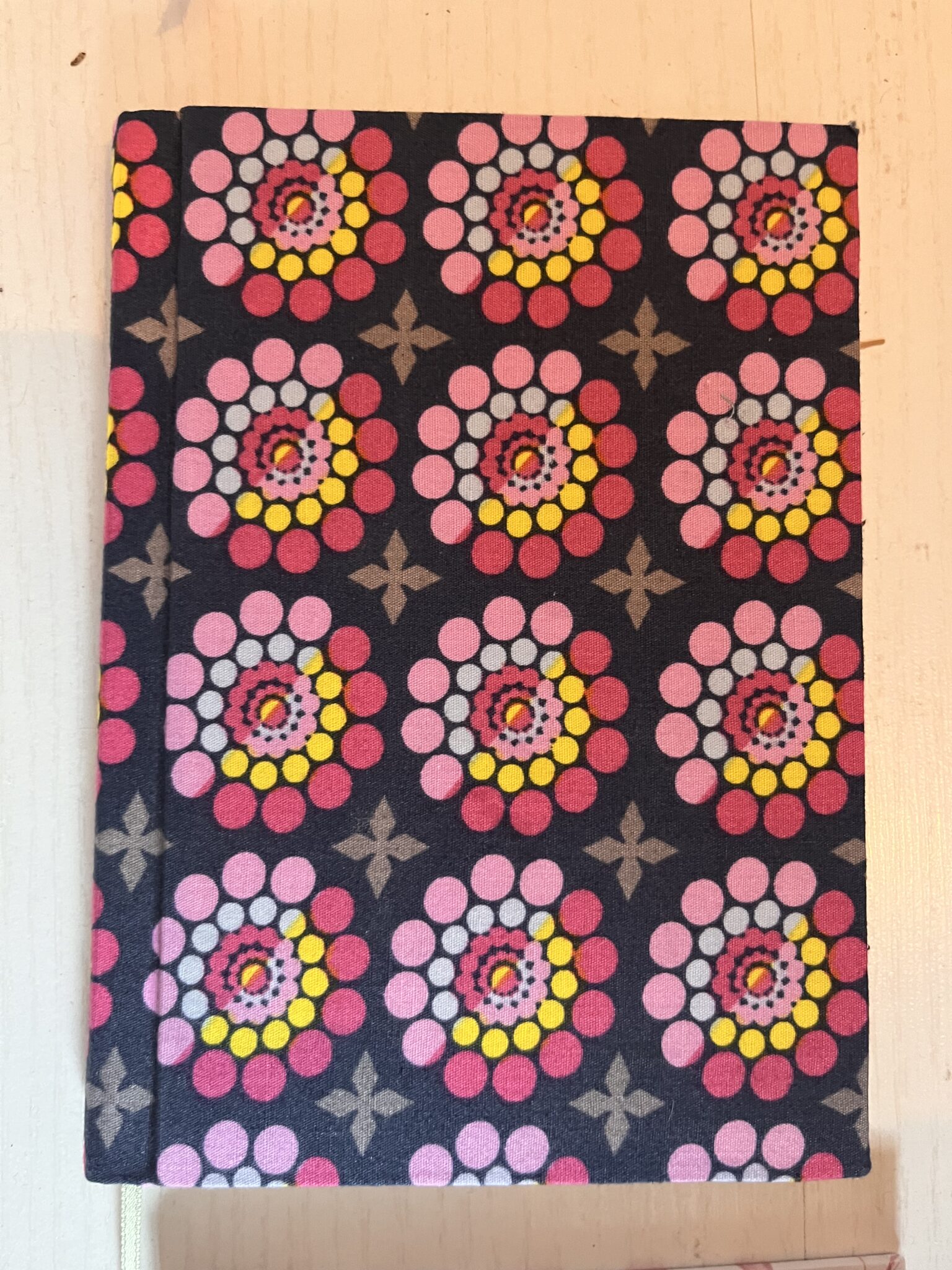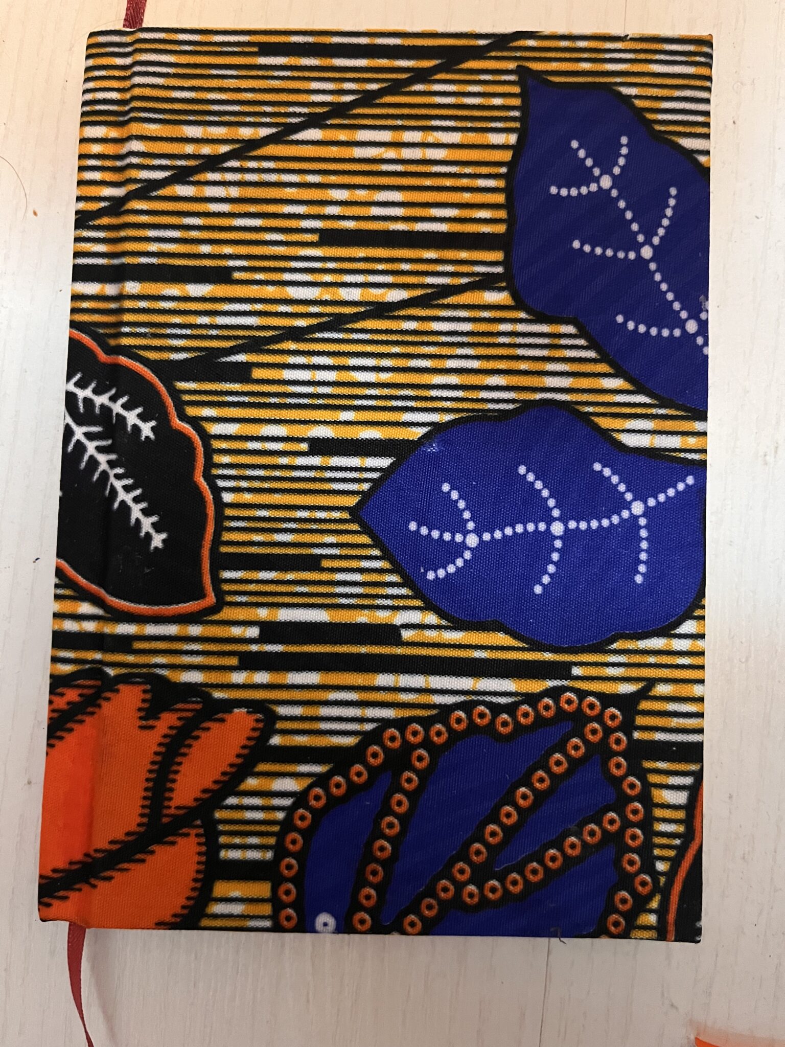 Les carnets ont de magnifiques couvertures, soit en tissus (issus de récup’), soit en papier (là encore de la récup’) et un joli marque-page en ruban (de récup’). Ainsi, chaque exemplaire est unique !